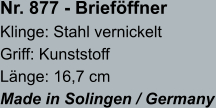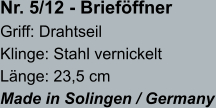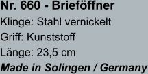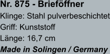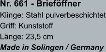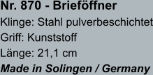 • Brieföffnerklingen